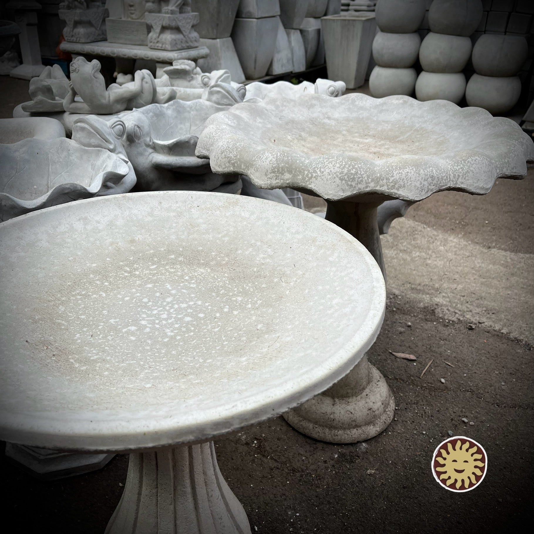 Locally made Concrete Birdbath Bowls of assorted designs. Bowls and Pedestals are priced separately and can be purchased separately. This is just the Bowl. Find the pedestal here: Mix n' Match Standard Birdbath Pedestals. These Birdbaths are Mix and Match with other like bowls and pedestals. Made locally in Oregon, with quality materials and trade knowledge. The bowls have a 4.5" cutout that the 4" riser on the pedestal fits into.